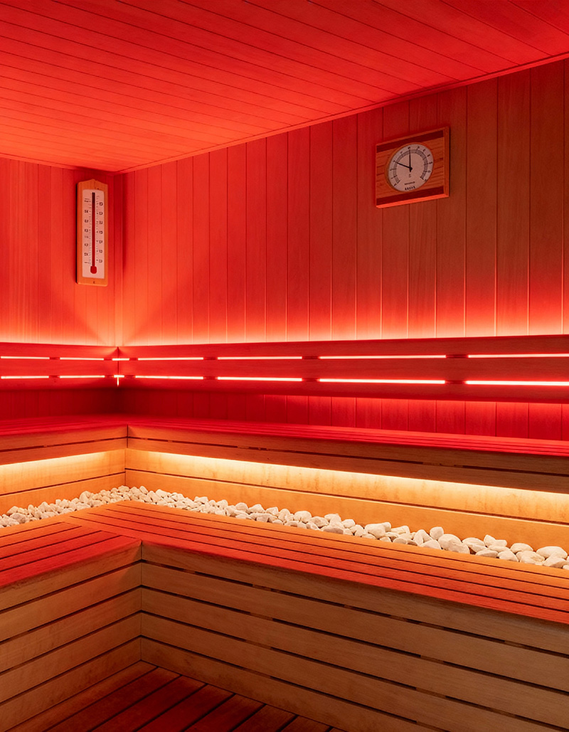 Yüksek ısı ve doğal ahşabın yarattığı denge sayesinde sauna; hem fiziksel gevşeme sağlar hem de zihinsel rahatlama sunar.